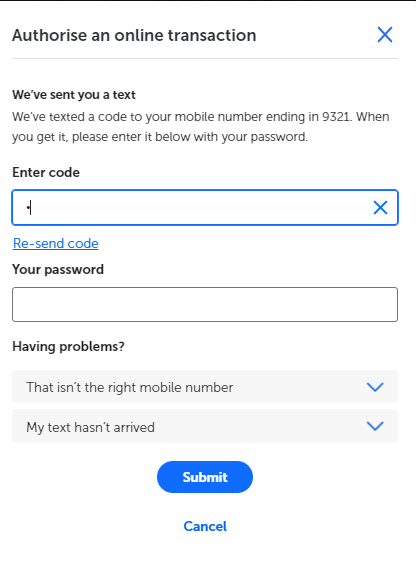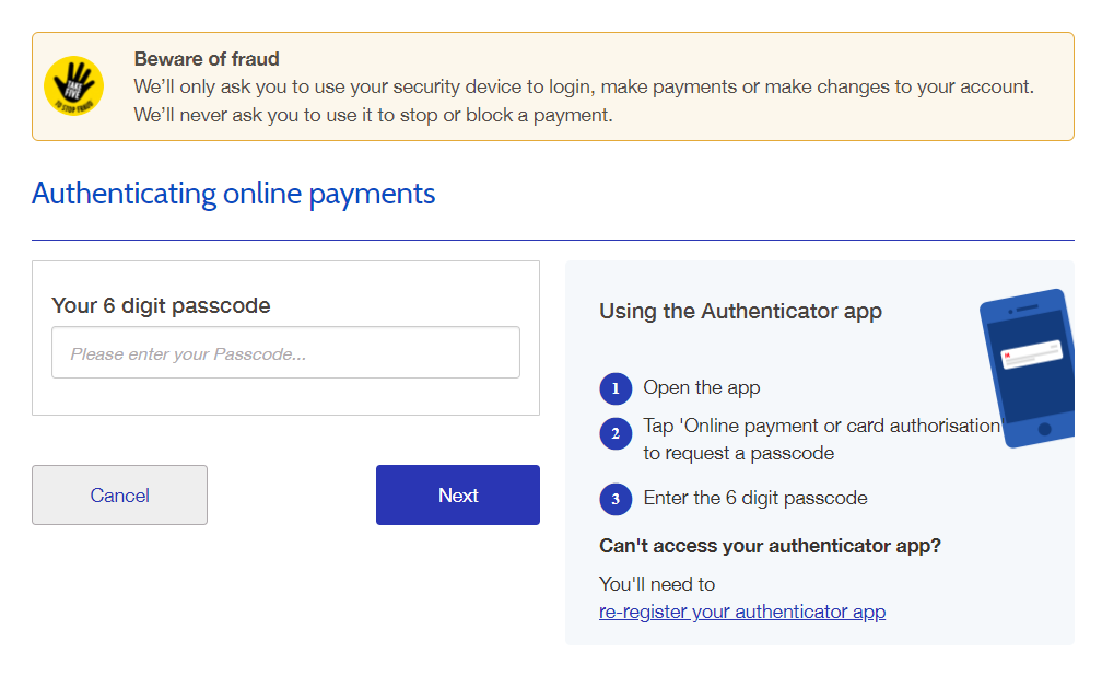 Have your mobile ready – using the phone number that’s registered with us – as we may need to send you a one-time passcode.