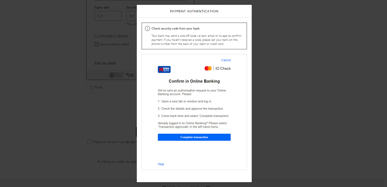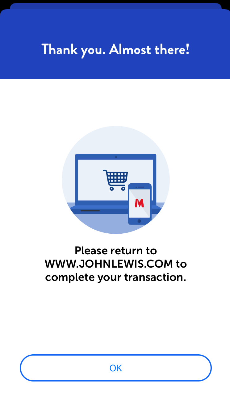 After confirming in the App, you must go back to the retailer’s website and click 'Complete transaction' to finish paying.