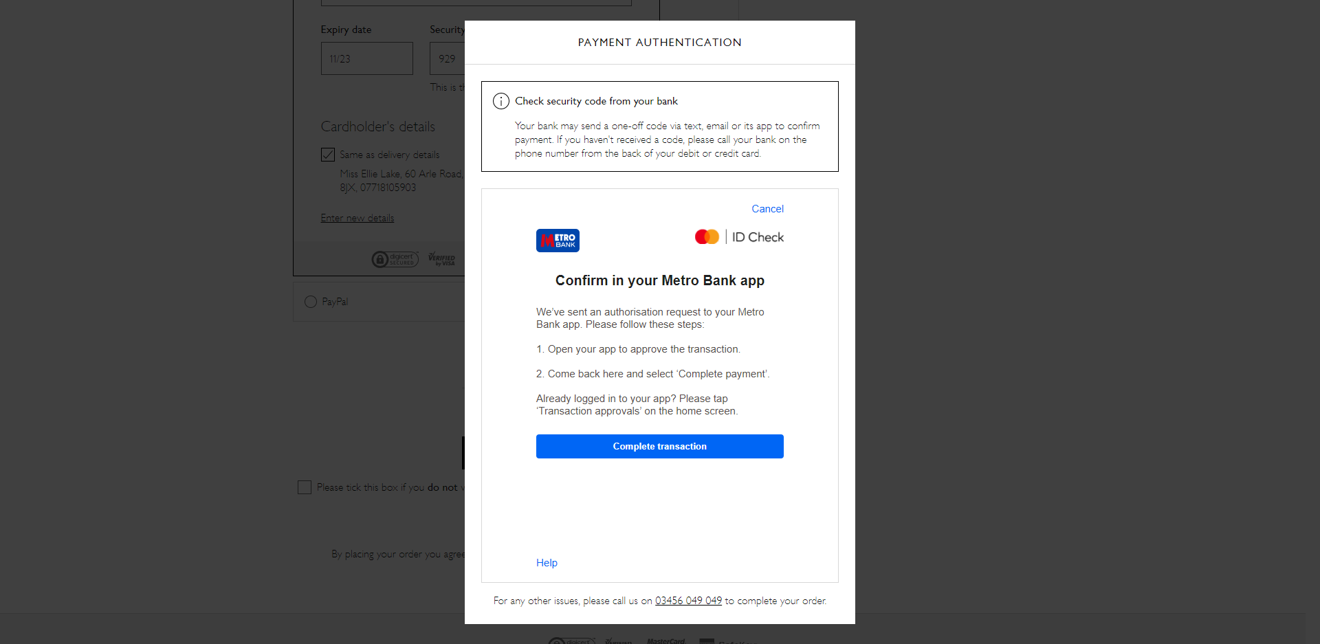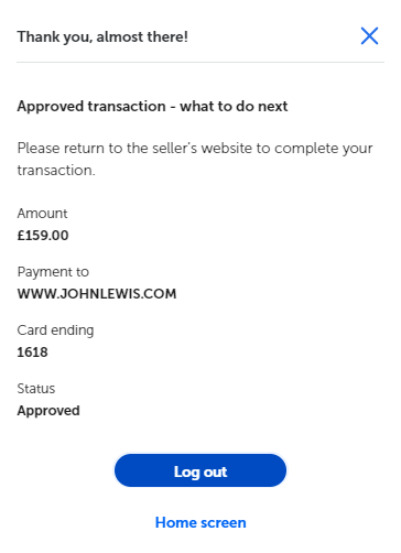Once you've clicked 'Submit' you must go back to the retailer's website and click 'Complete transaction' to finish paying.